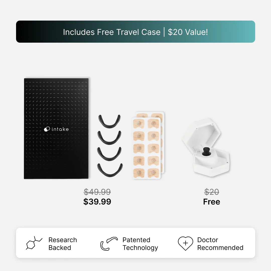 Intake is a research backed magnetic nasal dilator that opens your airways, reduces mouth breathing, and helps you breathe your best.
