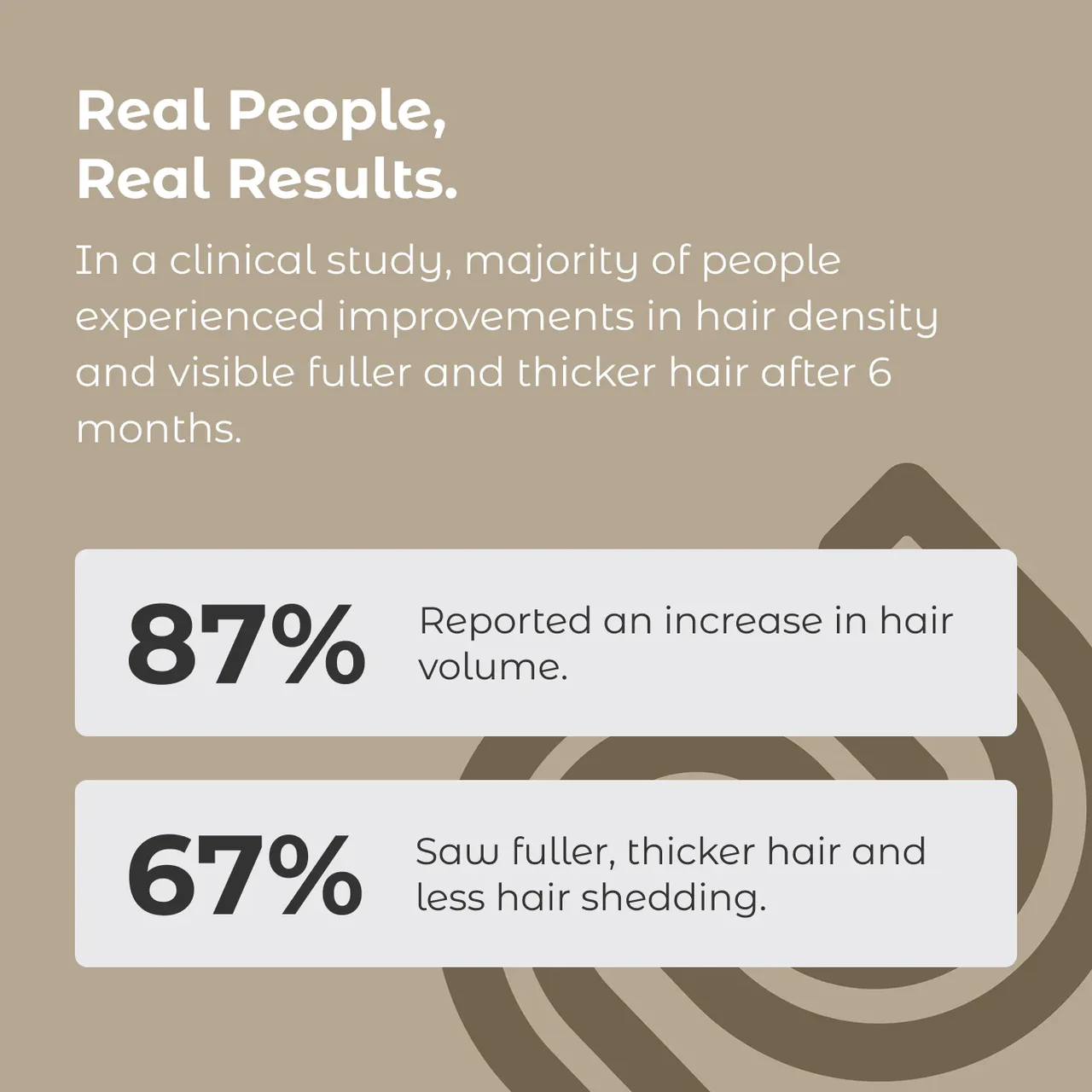 Visible improvement in thickness and reduced shedding are typically reported around 12 weeks, with more pronounced changes over 3–6 months.