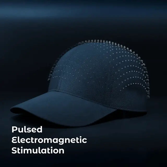 A wearable, non-invasive PEMF (Pulsed Electromagnetic Field) cap that uses NASA-inspired technology to stimulate scalp follicles and help support thicker, fuller-looking hair with daily 30-minute sessions